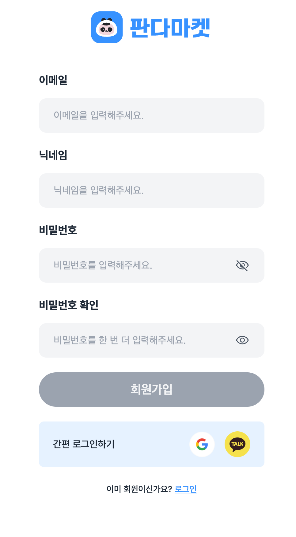 ์์ ํ ๋ก๊ทธ์ธ, ํ์๊ฐ์ , ๋๋ฉํ์ด์ง๋ฅผ ๋ฐ์ํ์ผ๋ก ๊ตฌํํ๊ณ
