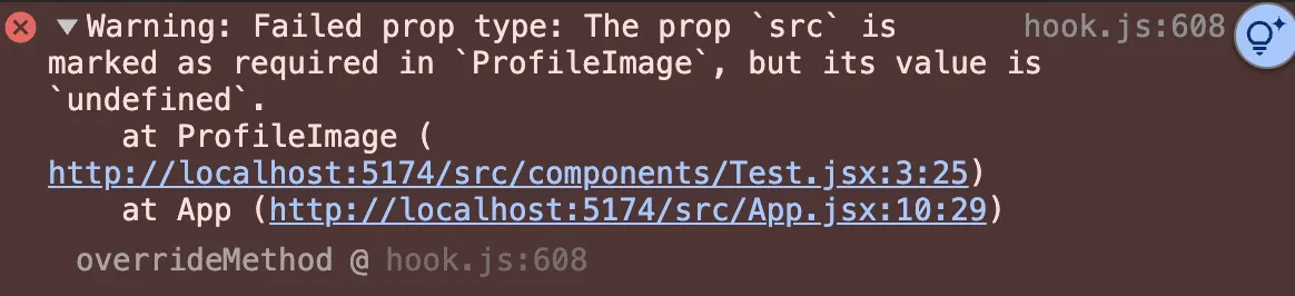์๋ชป๋ props๊ฐ ์ ๋ฌ๋ ๊ฒฝ์ฐ ์ฝ์์ ๊ฒฝ๊ณ ๋ฅผ ์ถ๋ ฅํด์ฃผ๊ธฐ ๋๋ฌธ์